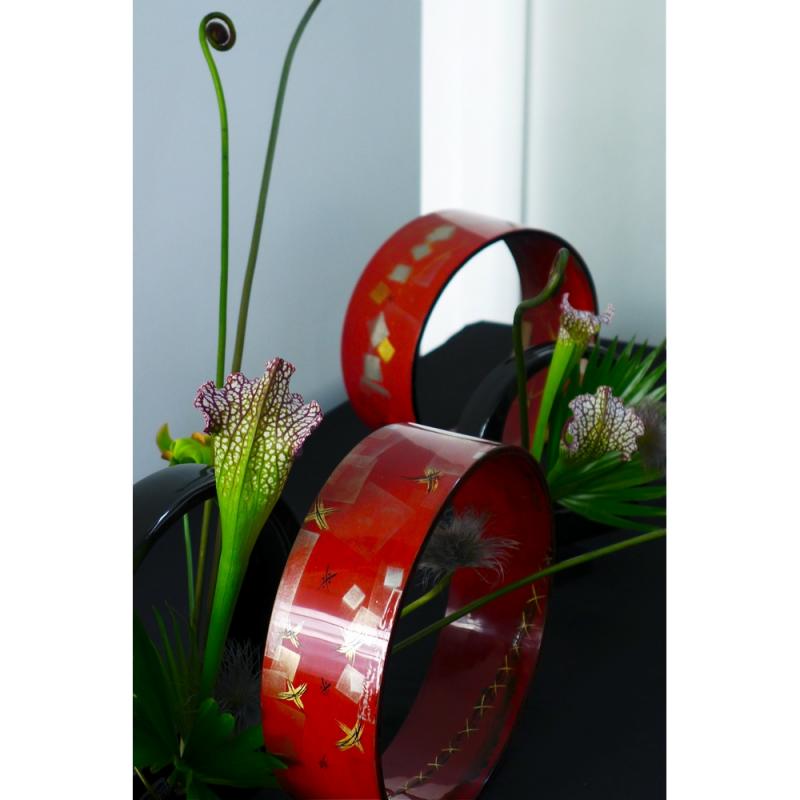 Un pari fou, une aventure humaine formidable : réunir 2 pratiques fortement japonaises, l’ikebana et la laque en associant les étudiants des 2 années du DMA laque avec les ikébanistes et leurs professeurs dans des créations parfois inatendues. De l’avis de tous, une réussite mais surtout des rencontres entre genre, âges et savoir exceptionnelles.