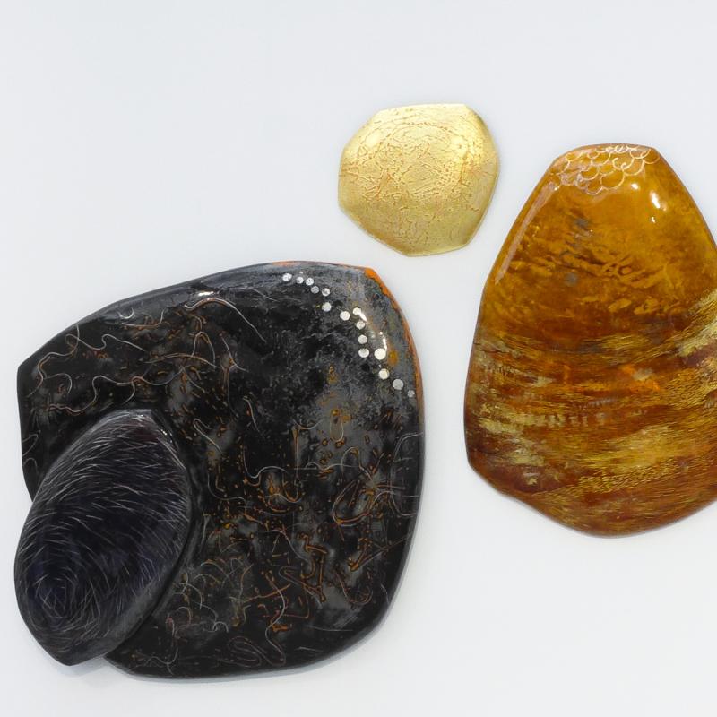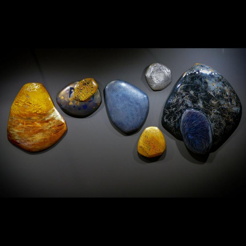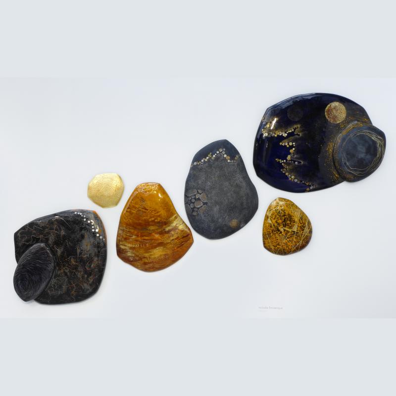 Le Passage, série de 6 galets en laque sur mousse expansée.