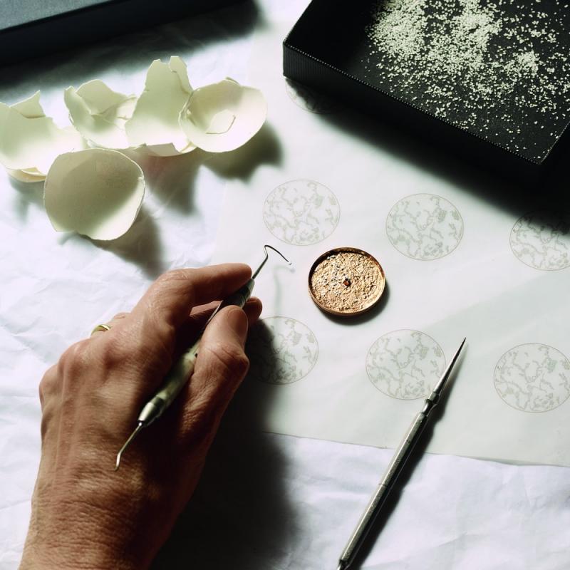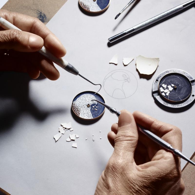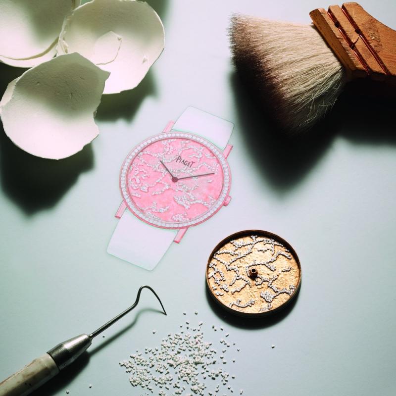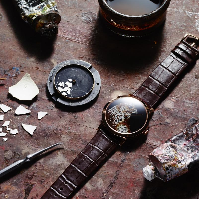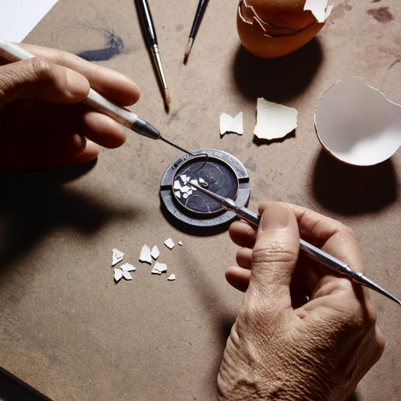 Le savoir faire de la laque et la technique ancestrale de l’incrustation de coquille d’œufs associés pour des montres d‘exception.