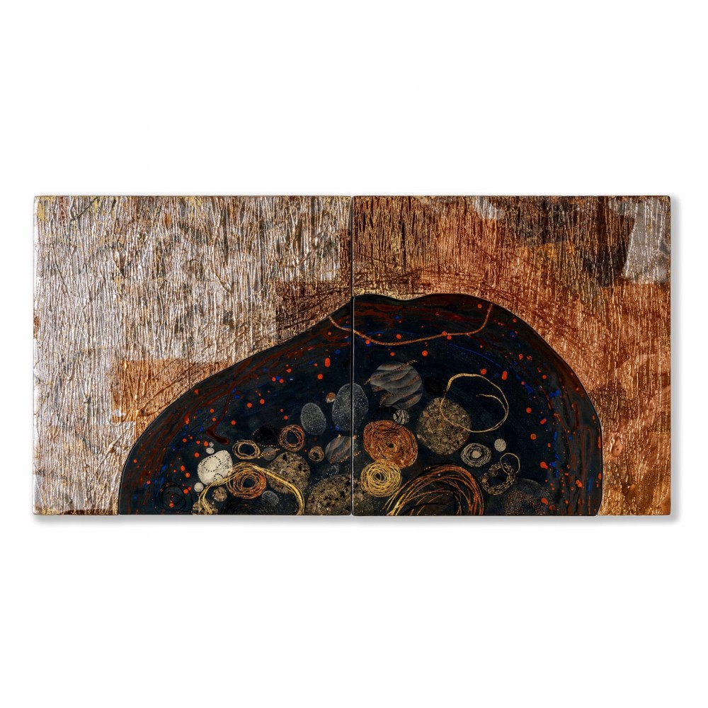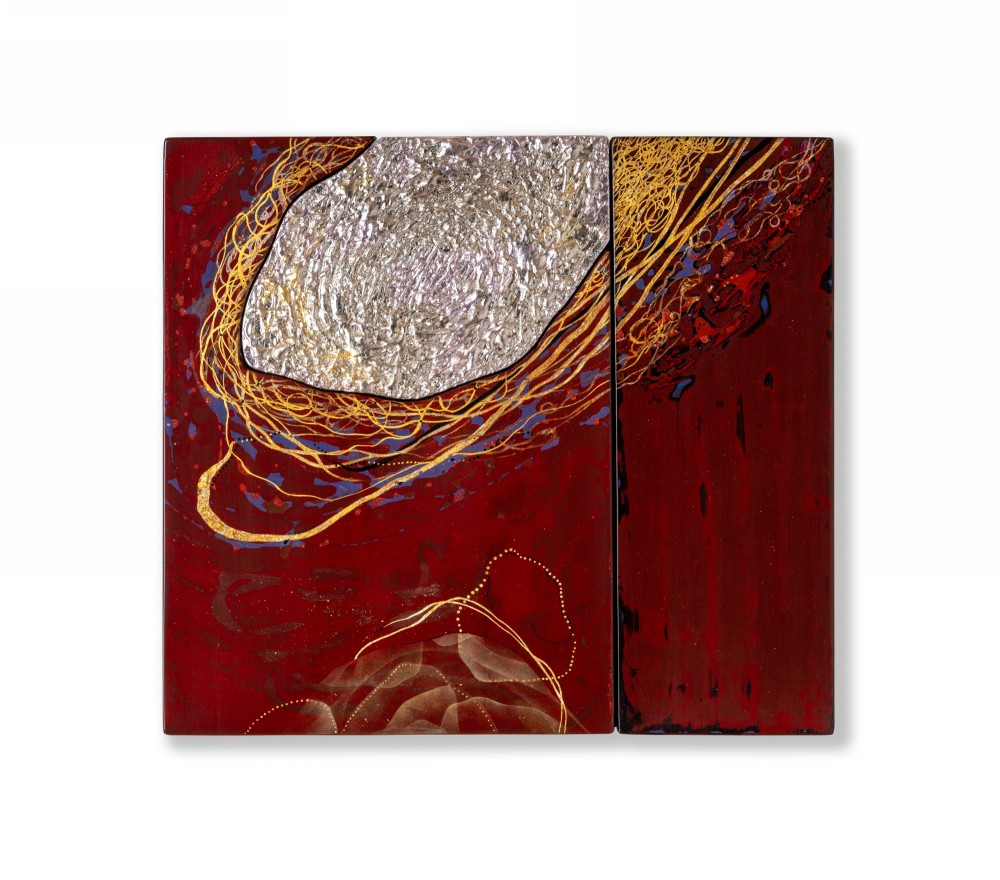 Dans la lignée des Matières Duelles, une suite de 9 panneaux qui s’articule autour de l’opposition des aspects divers de la laque et racontent la progression d’une cellule sur la totalité des surfaces.